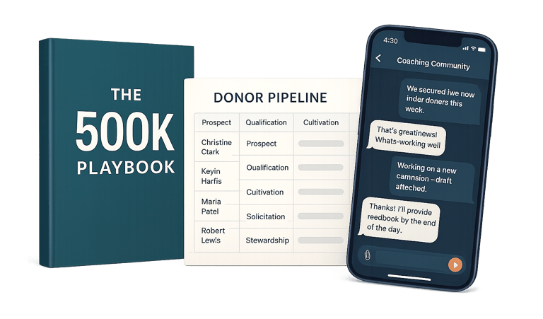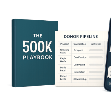 The 500K Playbook helps nonprofits master fundraising with clear, proven strategies — powered by Ben Gonscher & the Nonprofit Navigator team, including cutting-edge AI tools and a year-long support community.